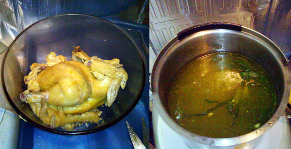 已經吃了一隻雞腿再排好 :p & 煮出來的雞湯...